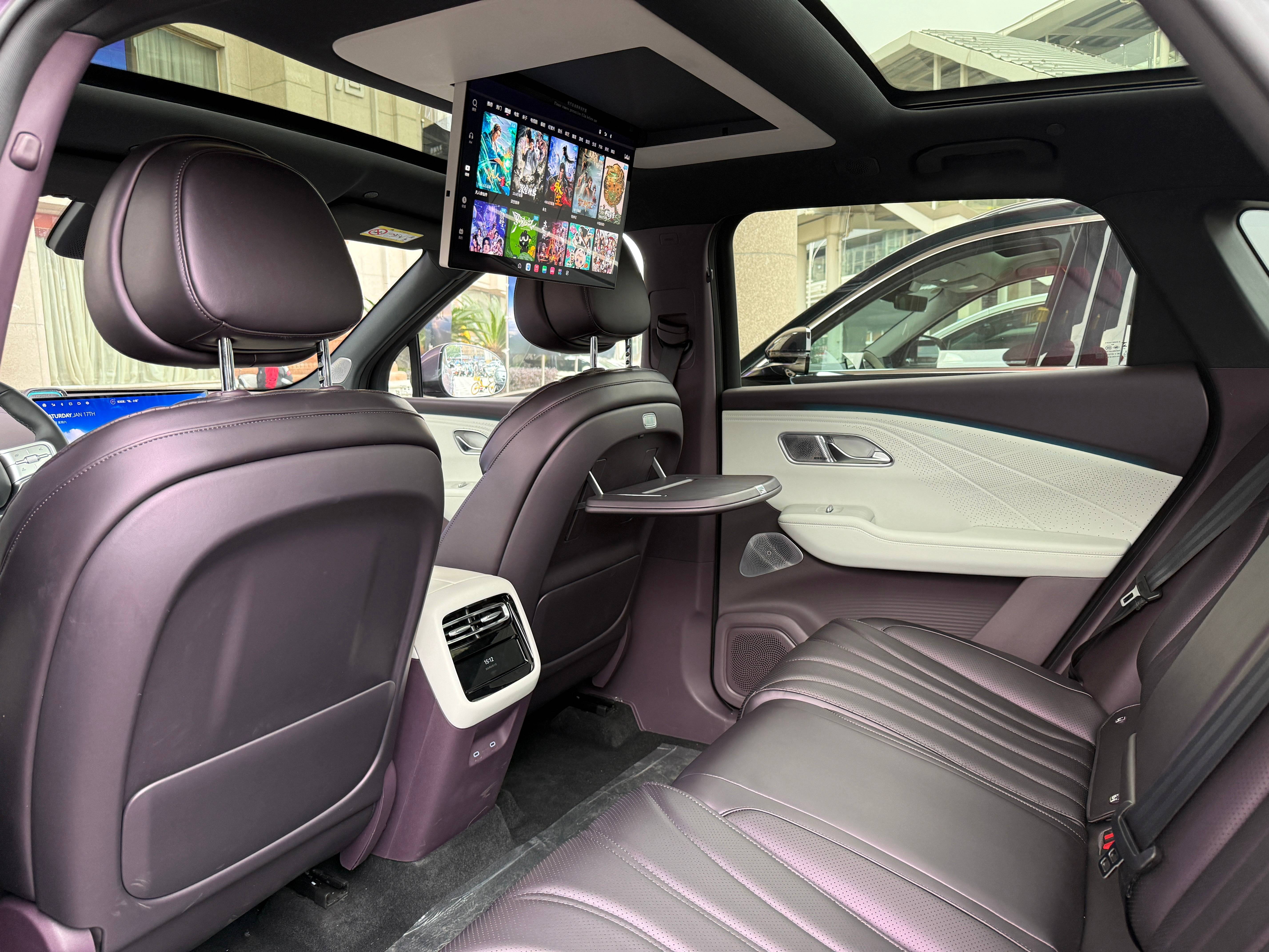 其余配置方面,风云T9L提供前排双零重力座椅,支持16向电动调节、通风/加热/按摩、腰托/腿托等功能;后排座椅也支持35°电动调节、通风/加热等,再配合折叠小桌板、17.3英寸2.5K吸顶娱乐屏、23扬伯牙之音等,保证乘坐舒适性。另外不仅后排座椅可放倒,前/后排还可形成双大床模式。