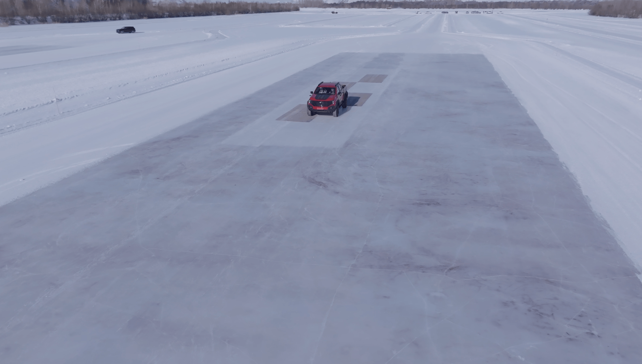 双电机驱动的特性,使它在低速起步阶段表现得非常从容。面对光滑如镜的冰面,动力输出并没有传统燃油皮卡那种突兀的爆发,而是更线性、更细腻。你能清晰感知到轮胎正在一点点寻找附着力,而不是一脚油门之后的空转与横摆。