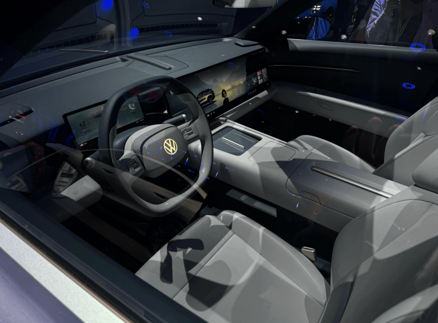 内饰暂未曝光,参考ID. EVO概念车来看,将采用与小鹏G9类似的悬浮式一体双联屏、矩形全液晶仪表屏,全新双幅式多功能方向盘上配备发光“VW”logo,并采用电子怀挡,镂空副仪表台上也有手机无线快充。