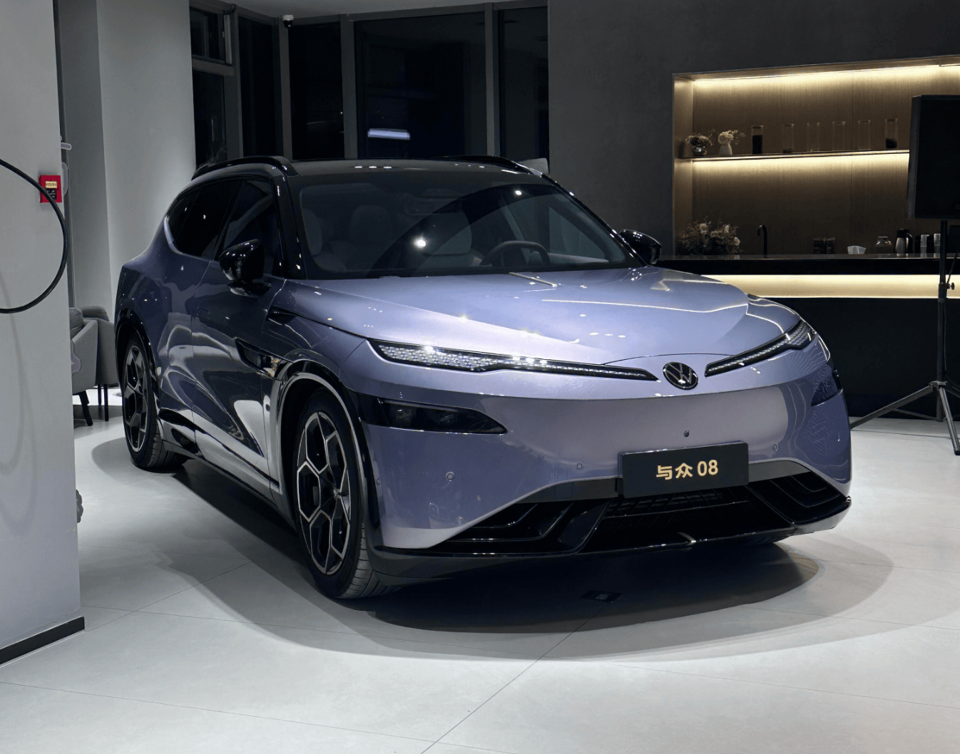 看到小米YU7、问界M7、理想i6的持续热销,大众也不甘落后,于是“金标大众”(ID.与众)推出了与众08。新车定位中大型纯电SUV,双电机可达503马力,最高续航730km,并配备小鹏双图灵AI芯片、8295P座舱芯片、智能冰箱、女王副驾、光感天幕、双腔空悬+DCC减震器……将于一季度内正式上市。日前,已有网友拍到了与众08的实车到店图,下面我们就来提前了解一下。
